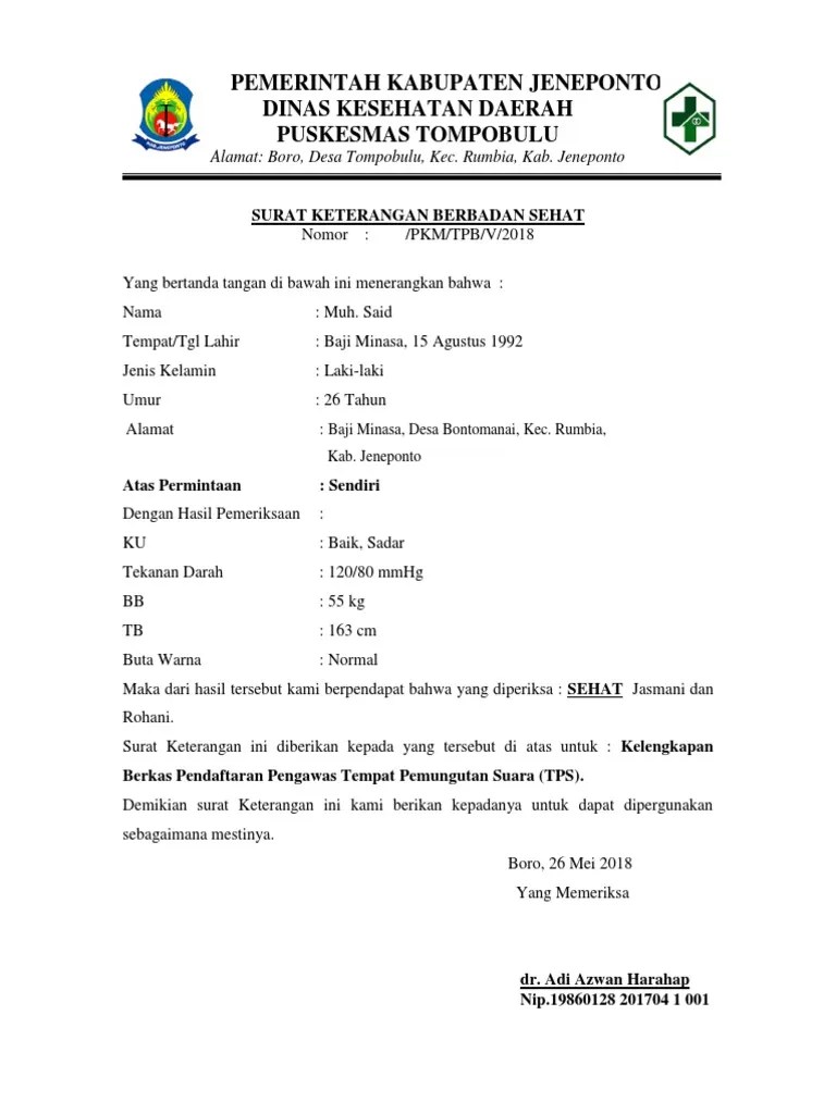 Berikut caranya, silahkan datang di dinas kesehatan provinsi yang terletak di jalan perintis kemerdekaan, tepat depan btp. Pada masa pandemi saat ini, dokumen yang berkaitan. Contoh surat keterangan berbadan sehat dari dokter surat dokter tanda. "iglesias sudah punya surat keterangan sehat sebelum melakukan pendakian. Namun, hal ini juga dapat bergantung dari kebijakan perusahaan yang berlaku dimana ada yang melakukan medical check.